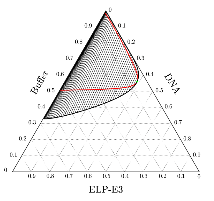 Biophysics. We work to elucidate the thermodynamic design rules that govern liquid-liquid phase separation of intrinsically disordered proteins (IDPs) and nucleic acids into condensed phase spheres known as coacervates. Living cells use protein/RNA/DNA coacervate membrane-free organelles to regulate gene expression in response to environment by phase separating and physically sequestering regulatory biomolecules. Using theoretical analyses, we interpret the phase behavior of archetypal IDP and DNA sequences to assemble synthetic organelles. Measured thermodynamic interaction parameters define the energetics of pairwise polymer-solvent and polymer-polymer interactions that establish multicomponent free energy landscapes to demarcate protein and nucleic acid amounts in each synthetic compartment.